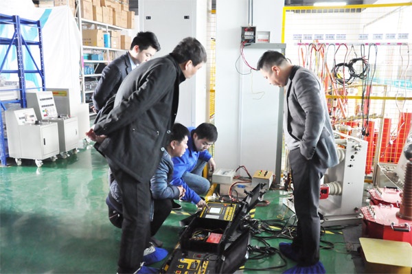 東北客戶此行主要考察SF6氣體回收裝置、無局部放電試驗(yàn)裝置、高壓開關(guān)動特性測試儀等設(shè)備。 在考察過程中,工程師還為客戶進(jìn)行了設(shè)備操作的現(xiàn)場演示,在演示過程中,客戶時不時會提出他們的疑問,我們的工程師也很耐心的為其解答。通過一天的考察后,東北客戶對國電西高的設(shè)備十分滿意,表示有合作意向。