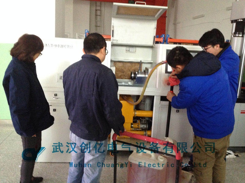 本次調(diào)試的產(chǎn)品主要是瓦斯繼電器檢驗(yàn)臺。本產(chǎn)品系統(tǒng)采用單管道流量計(jì)直接測量方法,可分別對φ25、φ50、φ80毫米管徑的國內(nèi)外氣體繼電器(例如:國產(chǎn)QJ,進(jìn)口德國EMB、MR、意大利COMEM等系列)的流速、容積和密封進(jìn)行檢測。此次采用的被試品是長江電力原有的一臺瓦斯繼電器,對其故障進(jìn)行檢驗(yàn)。在調(diào)試過程中,我司技術(shù)人員向其工作人員展示了如何接線及整個(gè)試驗(yàn)的操作過程,并耐心講解了儀器的工作原理,以及如何分析試驗(yàn)結(jié)果判斷被試品的問題所在。