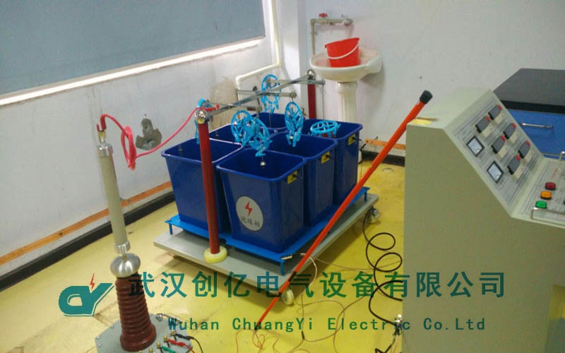 我司技術人員剛到衡水質檢所,就和其負責人王工前往實驗室進行試驗。首先檢測的是10KV的帶電作業(yè)的絕緣手套。其絕緣性能的好壞直接影響到工作人員的生命安全,因此在測試過程中更為的小心謹慎,務必使測量結果更精準。我司技術人員認真演示了整個試驗過程,做試驗過程中對于一些測試中需要注意的事項進行講解,例如要保證絕緣手套露出水面的高度為400mm±13mm等。使客戶能在調試培訓的過程中盡快的學習到設備的使用方法和注意事項。