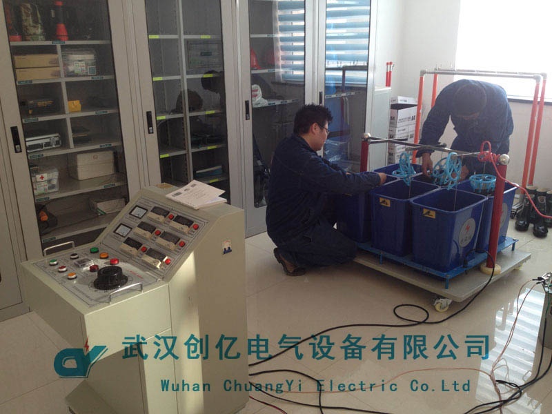 由于簡化了測試程序,因此技術(shù)人員在調(diào)試培訓(xùn)的過程主要詳細(xì)講解了產(chǎn)品測試原理以及操作過程中的注意事項(xiàng)。本次檢驗(yàn)過程中,主要以客戶35KV帶電作業(yè)的手套靴為被試品,向客戶演示了整個(gè)試驗(yàn)的操作過程,本次試驗(yàn)主要是按照客戶的規(guī)程進(jìn)行試驗(yàn),詳細(xì)演示了整個(gè)操作過程和操作步驟。