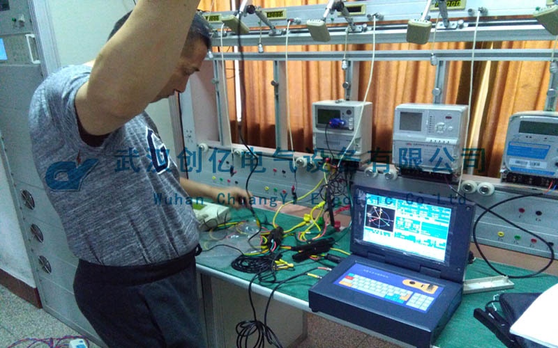 現(xiàn)場(chǎng)采用客戶(hù)的三相三線(xiàn)電能表為被試品向客戶(hù)進(jìn)行操作演示,并培訓(xùn)客戶(hù)使用我們的產(chǎn)品。我司技術(shù)人員先和電站人員前往實(shí)驗(yàn)室進(jìn)行試驗(yàn)。首先使用電能表校驗(yàn)臺(tái)模擬電能表的負(fù)荷,指導(dǎo)客戶(hù)動(dòng)手操作,將CYYM-3B的電壓電流線(xiàn)接到三相三線(xiàn)的電能表上。然后進(jìn)行模擬實(shí)驗(yàn)。