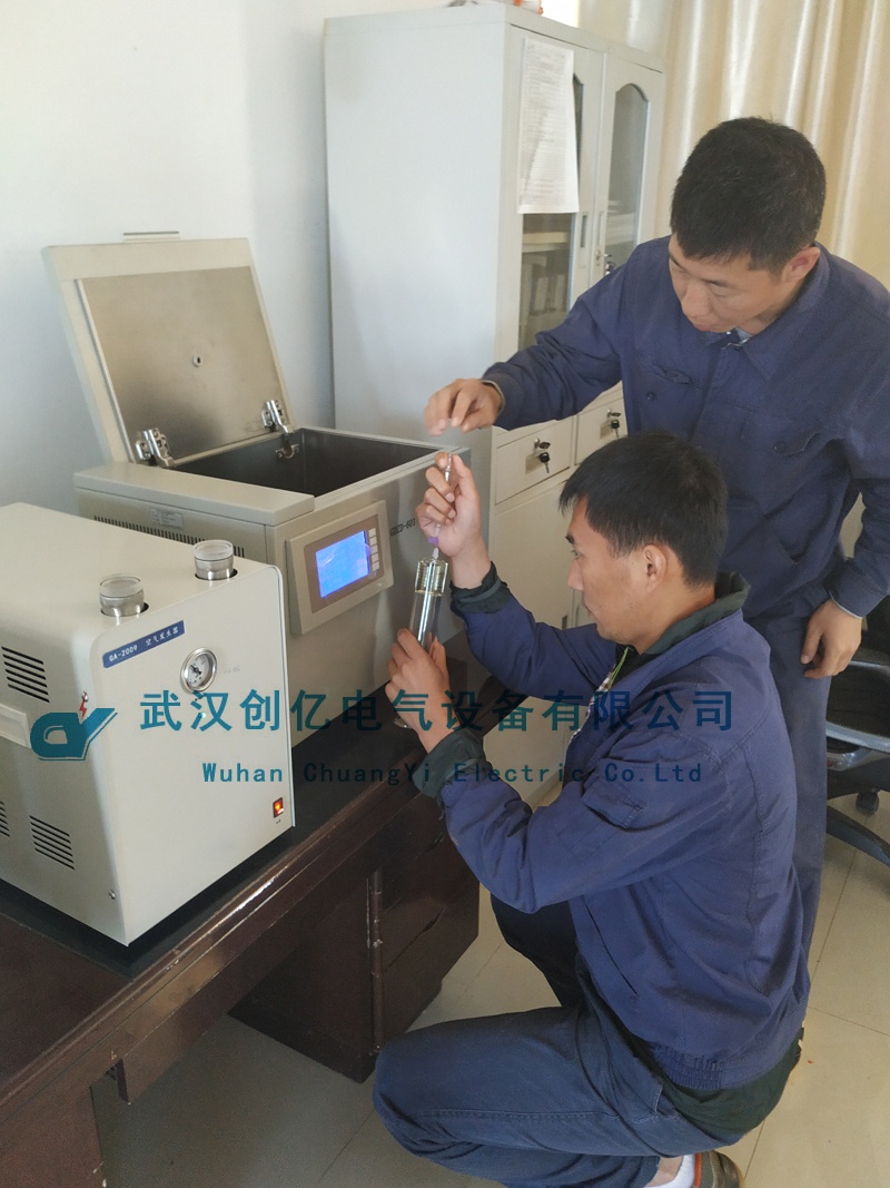創(chuàng)億電氣應(yīng)邀前往云南為三峽風(fēng)電調(diào)試其購買的一批油氣測試設(shè)備。其中包括CY-9560B 電力系統(tǒng)專用油色譜分析儀、CYOT-80 絕緣油介電強度測試儀以及CYJD-3A SF6氣體密度繼電器全自動校驗儀等測試設(shè)備。