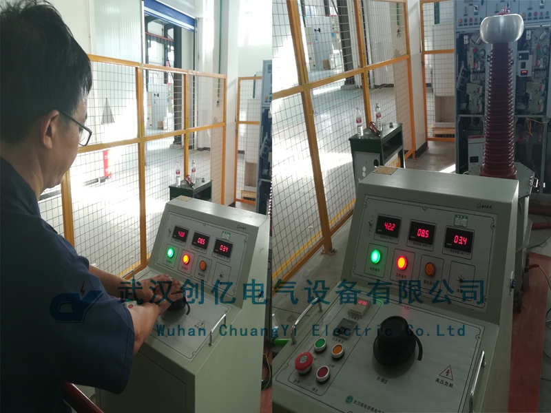 隨后,用其購(gòu)買的CYYD-15/150工頻耐壓試驗(yàn)裝置對(duì)現(xiàn)場(chǎng)的10kV開關(guān)做耐壓試驗(yàn)。客戶按照標(biāo)準(zhǔn)升壓至42kV一分鐘無(wú)閃絡(luò),試驗(yàn)通過(guò)!